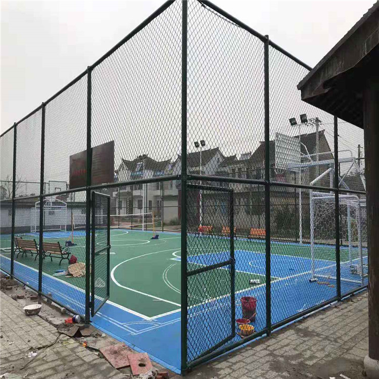 球場隔離圍欄網安裝包含立桿、橫豎橫杠及圍欄網,全部立桿、橫杠、圍欄網及門都選用醇酸紅防腐底漆涂二層以上,再選用醇酸戶外磁漆涂兩道,色調為綠色,并且圍欄網安裝包含扁鐵和全部零配固定件,立桿為:65鋼管,橫杠為50鋼管,球場隔離圍欄網:浸膠圍欄網,網距為45毫米×45毫米,外徑為3.9 毫米,內徑為2.5 毫米,高度為4.0m,色調為綠色,門是 50鋼管架,球場隔離圍欄網型號規格與圍欄網相同。