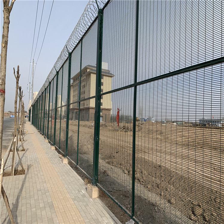監(jiān)獄密紋防爬網(wǎng)是一種防護(hù)很強(qiáng)的鋼網(wǎng)墻,是一種新型的防護(hù)網(wǎng)。由于這種網(wǎng)的網(wǎng)孔比較小,監(jiān)獄密紋防爬網(wǎng)可以有效的阻止人或人利用工具進(jìn)行攀爬入內(nèi),從而保證鋼網(wǎng)墻內(nèi)部環(huán)境安全,所以又叫防爬網(wǎng)。