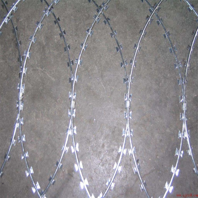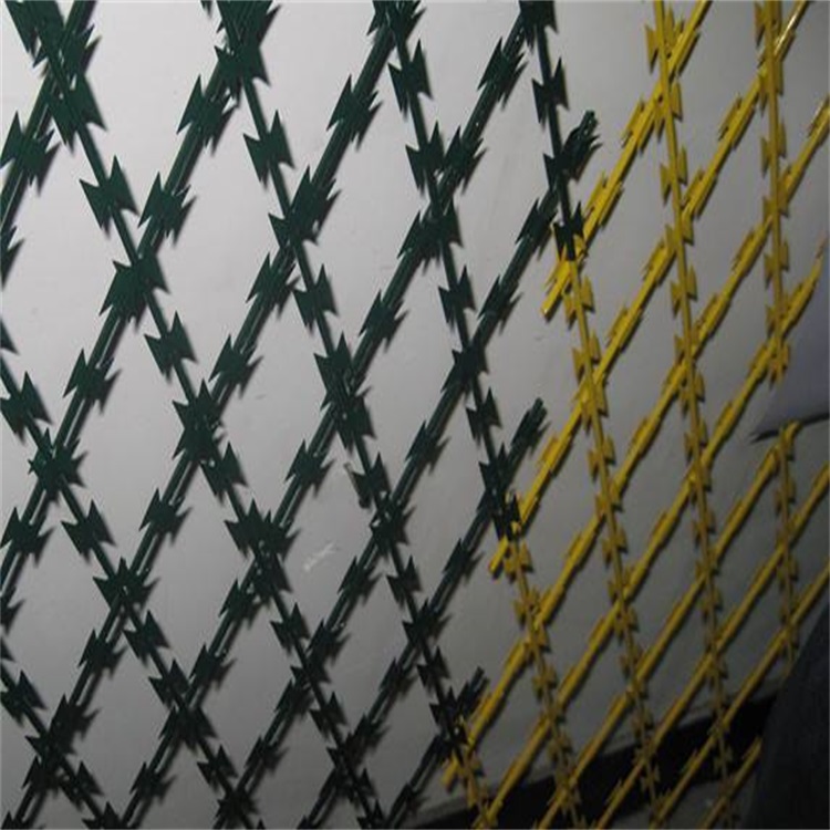 刀片刺繩主要材質(zhì)有鍍鋅板絲和不銹鋼板絲,由熱鍍鋅鋼板或不銹鋼薄板沖壓出尖銳的刀片狀,由于刺網(wǎng)造形獨(dú)特不易觸摸,因而能達(dá)到極好的防護(hù)隔離效果。