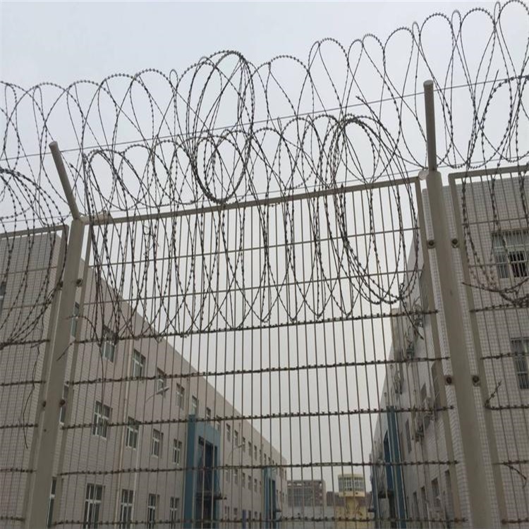 刺絲固定于Y型曲臂上,曲臂兩側刺絲數量均為4根,共計8根。刺絲材質為鋅鋁合金,采用中1.7的雙股線,倒韓1.6,每個倒刺伸出四個點,刺長為16mm,間距為100mm,倒刺采用熱鍍鋅,平均鍍鋅量為135g/㎡。刺絲編織特點:外形美觀,線條簡捷,銀色外表,現代潮流,防盜設計,刺絲環繞間用刺繩卡扣連接,防盜,安全,開啟方便,規格多,滿足不同環境。