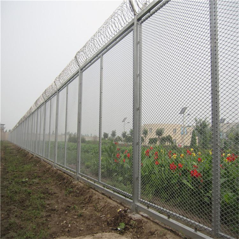 監獄鋼板護欄網網孔:網孔一般為30mm*60mm50mm*100mm、60*120mm。網孔形狀為菱形網孔,為整張沖壓拉伸而成,無焊接點,更加牢固。