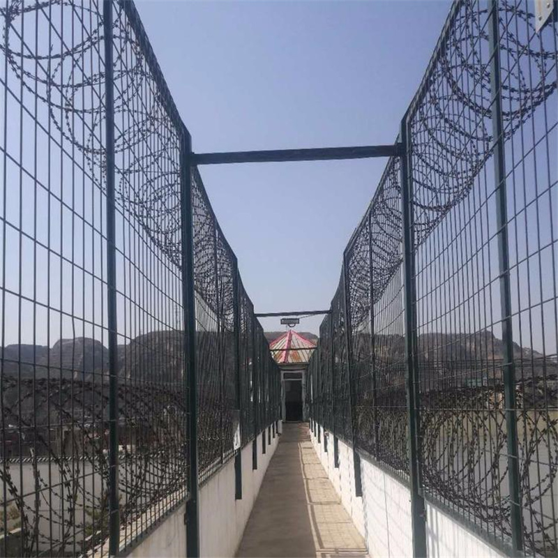 獄墻頂部隔離網在施工時,獄墻每間隔25米進行拉桿支撐網墻拐角處和分段處的兩根立柱應預制連體構件。