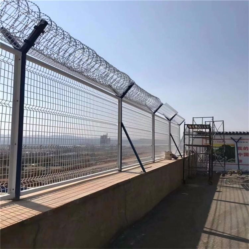 監獄巡邏道鋼網墻上部安裝刀片刺網(刺絲滾籠),刀片刺網具有嚇阻、防翻越等效果,材質堅硬,高強度,高張力,造型設計獨特,不宜觸摸,因而能達到極好的防護隔離效果。監獄巡邏道鋼網墻還具有施工簡便,經濟實用等優點