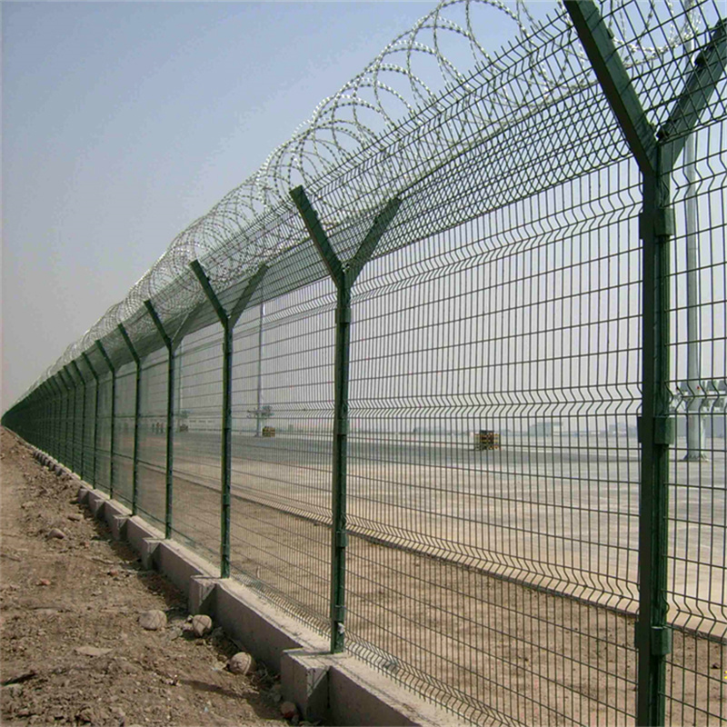 焊接式機場圍界具有產品精度高,誤差小,質量好等特點,鋼筋焊接網是一種焊接成型的網狀鋼筋制品,是縱向和橫向鋼筋分別以一定的間距排列且互成直角,全部交叉點均用強電阻壓力熔焊在一起的鋼筋網片。