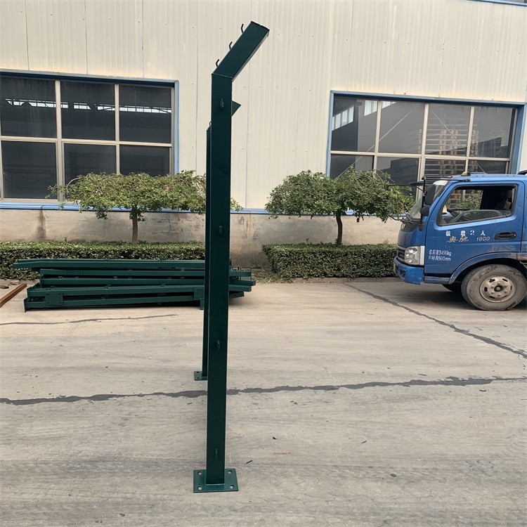 規格為:4cm*3cm*3mm*2.1M與u型鋼立柱一樣也是高速公路常用的幾種立柱之一,這種是做為護欄網的立柱使用,與網片的連接方式為:掛鉤螺栓。表面處理方式為:熱鍍鋅。一般為加強其使用壽命,也有地區采用熱鍍鋅浸塑。