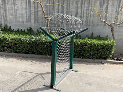 鋁包鋼機場圍界網(wǎng),鋁包鋼絲機場護欄具有獨具匠心的鋼絞線穿插式連接立柱和網(wǎng)片,由Y型立柱、鋁包鋼勾花網(wǎng)、鋁包鋼刺絲網(wǎng)組成。