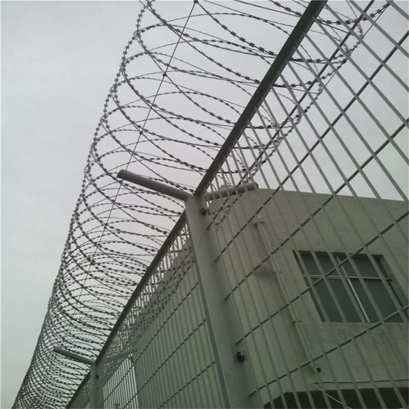 勞教所隔離護(hù)欄-看守所隔離護(hù)欄是用在勞教所、看守所的護(hù)欄,也可以用在監(jiān)獄、機(jī)場(chǎng)等場(chǎng)所。起安全隔離防護(hù)的作用,其結(jié)構(gòu)是由一般采用2米高的網(wǎng)片+2.5米高的Y字型立柱+φ500mm或φ600mmr的刀刺網(wǎng),整體下來(lái)可達(dá)2.5米左右。因其高度對(duì)犯罪分子起到無(wú)法攀爬的作用,起到很好的防護(hù)效果。