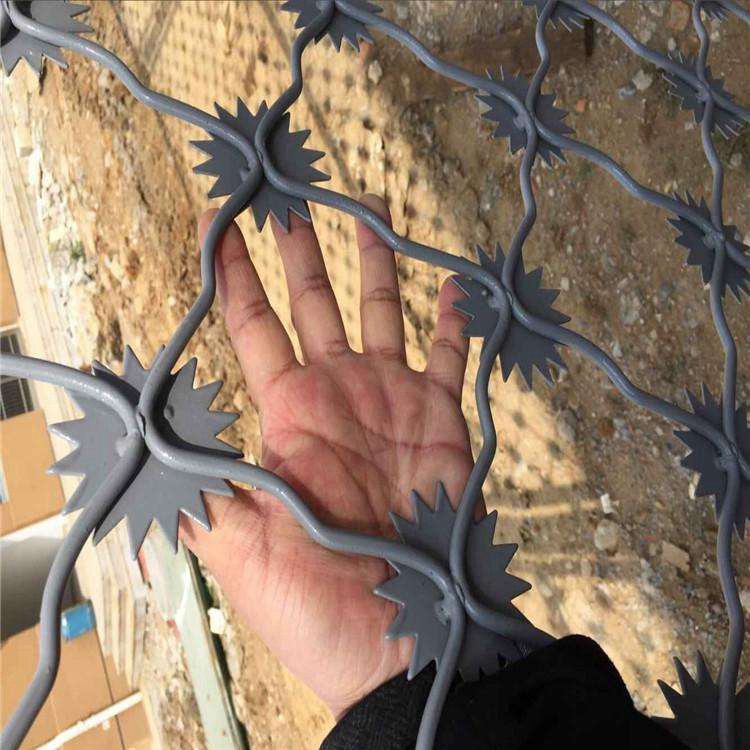 監獄防攀爬圍欄網具有結構新穎、鞏固緊密、網面平坦、網孔均勻、刀鋒銳利、防攀爬、抗腐蝕性強等特點。建設于監獄的內外墻地面及高墻之上,網墻內側或頂部加裝蛇腹形刀刺網,構成一道高不可攀、難以逾越的阻隔障礙。合作高壓打擊電網、各種監控報警設備確保監獄安全滿有把握。
