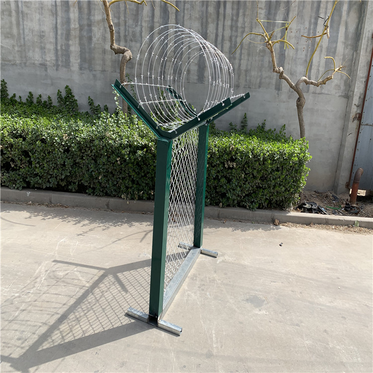 民用和國用機場鋼筋圍界隔離網的國際標準,圍界網片及V型網的網孔其相鄰橫絲間距不得大于10cm,豎絲間距不得大于5cm,機場圍界網片與立柱之間的縫隙不得大于2cm,網片離地間距不得大于2cm。焊接圍界網片的鋼絲直徑必須大于等于5mm。機場圍界的立柱應采用60*60mm方管制成,管壁厚度不得低于2mm,立柱及網片的表面防腐年限不能低于8年。