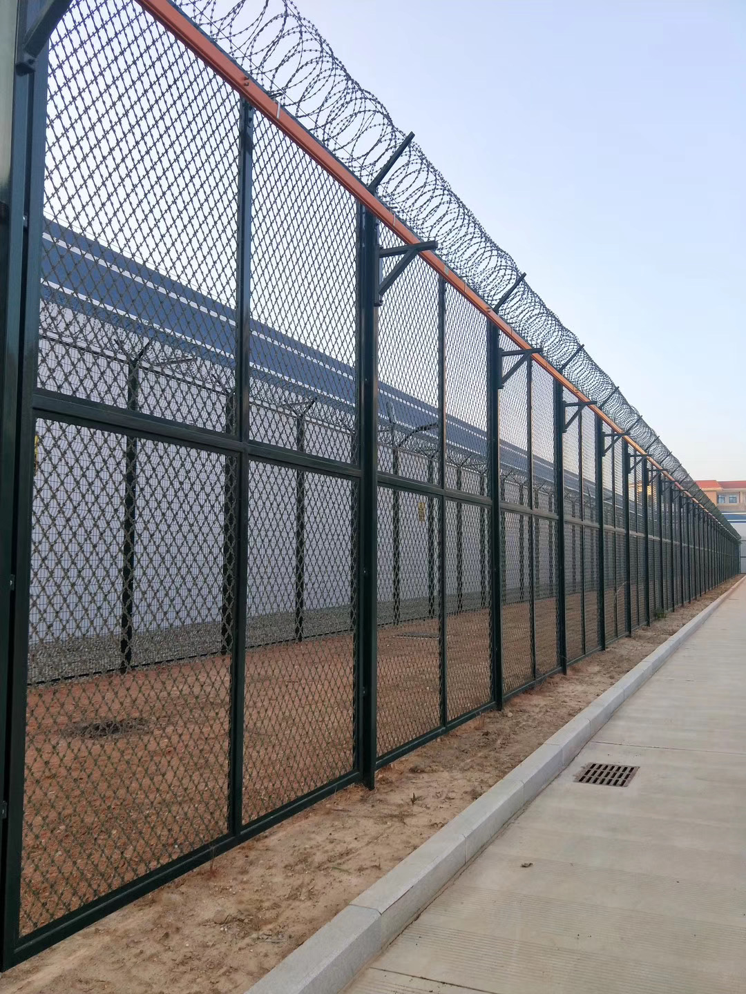 監(jiān)獄焊接刀片刺網(wǎng)的焊接制作方法,刀刺隔離網(wǎng)建設(shè)于監(jiān)獄、看守所的內(nèi)外墻地面及高墻之上,網(wǎng)墻內(nèi)側(cè)或頂部加裝蛇腹形刀刺網(wǎng),形成一道高不可攀、難以逾越的隔離障礙。配合高壓打擊電網(wǎng)、各種監(jiān)控報(bào)警設(shè)備確保監(jiān)獄安全萬(wàn)無(wú)一失。
