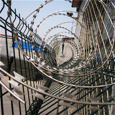 Y型架上邊架蛇腹型刀刺:由熱鍍鋅鋼板或不銹鋼薄板沖壓出尖利的刀片狀,高張力鍍鋅鋼絲或者不銹鋼絲做芯線組合而成的阻盡器材。刀刺直徑采取50-60厘米,刀型整潔、刀片鋒利、排列均勻致密、連接堅固、防腐才能強,可能達到防攀越、防拆卸最高保險等級。