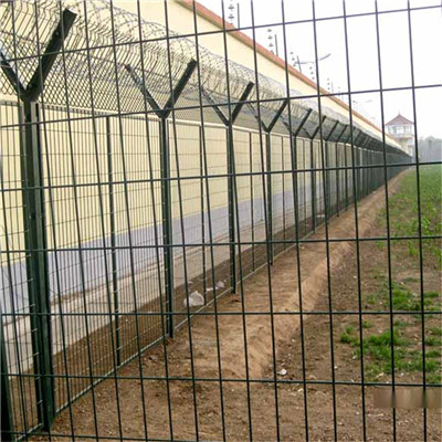 監獄金屬鋼網墻是監獄建設不可缺少的部分,它可以用來加高圍墻高度,防止服刑人員攀爬,也因其透視性好、安全度高,可以作為巡視墻使用,便于對服刑人員的監管,也可以地面安裝,比如生活區、安檢區等,一般采用低碳鋼絲焊接成網片,熱鍍鋅刀刺網,Y型矩形鋼立柱組合而成,Y型矩形鋼立柱頂端可帶V型網加強筋網也可不帶,帶上v型加筋網可增加鋼網墻的抗沖壓力。