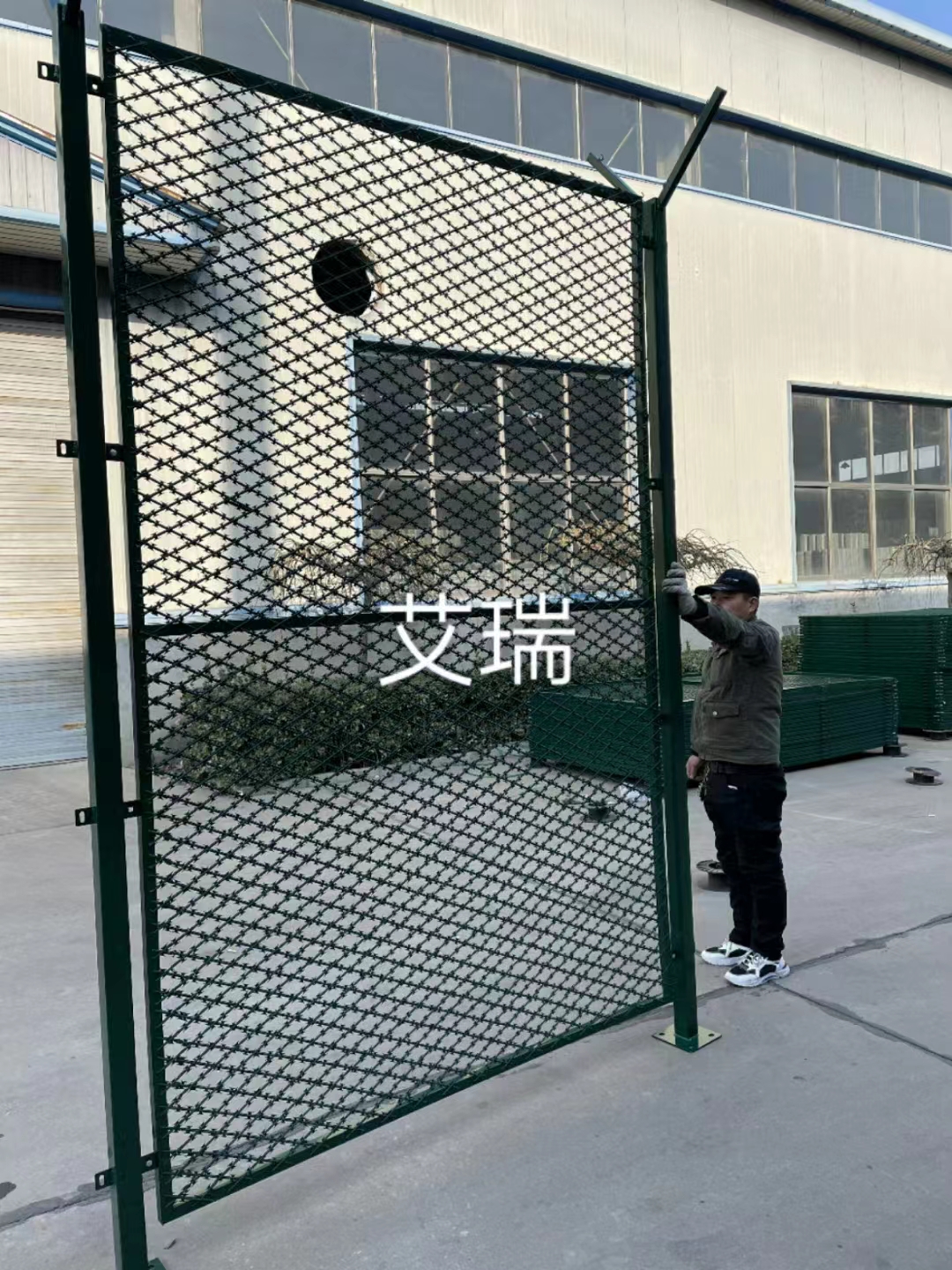 第四步,接下來就要焊接隔離網了。將焊接好的刀刺網按照施工圖紙對網面進行進一步處理,焊接好邊框和立柱后就可以進行表面處理了。