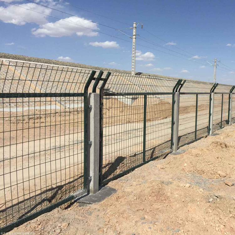 鐵路圍欄網(wǎng)主要由圍欄網(wǎng)、柱子、橫梁和連接件組成。圍欄網(wǎng)一般由金屬絲制成,它可以是單層或者多層的。圍欄網(wǎng)的高度和密度都不盡相同,這取決于需要保護的鐵路的等級和周邊環(huán)境。柱子和橫梁安裝在圍欄網(wǎng)的兩側(cè),它們起到支撐圍欄網(wǎng)的作用。連接件主要用來連接柱子和橫梁。
