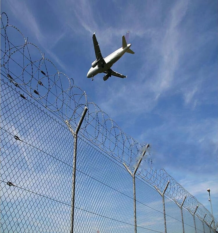 機(jī)場(chǎng)隔離網(wǎng)也稱為機(jī)場(chǎng)護(hù)欄網(wǎng),機(jī)場(chǎng)圍界和機(jī)場(chǎng)防護(hù)網(wǎng) 它們是保護(hù)機(jī)場(chǎng)邊界,防止損壞機(jī)場(chǎng)設(shè)施,機(jī)場(chǎng)安全和使飛行更順暢的重要設(shè)施它由V形支撐柱,加固的焊接薄板網(wǎng),安全防盜連接器和熱浸鍍鋅刀片倒鉤籠組成。 它具有很高的強(qiáng)度和安全防御能力。 近年來,這種形式的防護(hù)網(wǎng)已廣泛用于機(jī)場(chǎng),軍事基地和其他高安全性場(chǎng)所。 機(jī)場(chǎng)隔離網(wǎng)頂部增加了刀片鐵絲網(wǎng)和刀片鐵絲網(wǎng),以增強(qiáng)防護(hù)性能。