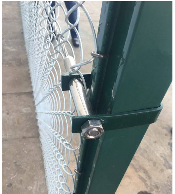 機場鋁包鋼絲圍網采用冷拉低碳鋼絲外徑包裹鋁層的防腐處理,鋁包鋼絲抗拉強度應達到500Mpa,立柱采用由冷軋鋼帶直縫焊接而成的矩形燕尾鋼管并做內外防腐處理,要求鋼帶抗拉強度應達到375Mpa;斜撐采用由熱軋鋼帶直縫焊接而成的矩形鋼管并做內外防腐處理,要求鋼帶抗拉強度應達到375Mpa。延伸臂由熱軋角鋼焊接而成并做防腐處理,要求抗拉強度應達到375Mpa。鋁包鋼絲滾籠為主絲直徑3.0mm的冷拉高碳鋼絲,抗拉強度應達到1340Mpa;刺絲為直徑2.2mm的冷拉低碳鋼絲,抗拉強度應達到500Mpa,鋁包鋼刺絲為主絲直徑2.8mm的冷拉高碳鋼絲,抗拉強度應達到1340Mpa;刺絲為直徑2.2mm的冷拉低碳鋼絲,抗拉強度應達到500Mpa,間距均為100-200mm。鋁包鋼絲滾籠與刺鋼絲采用不銹鋼扎絲連接,沿長度方向每隔500mm設4個連接處。