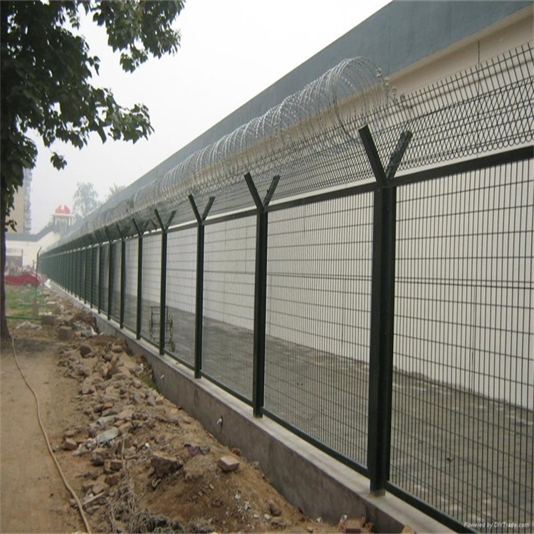 1焊接v型圍墻護欄網連同立柱及刀片刺網連接配件運至現場。