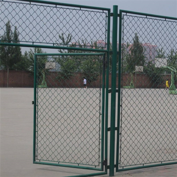 寸為45mm×45mm,網(wǎng)線徑為3.6mm。足球場圍網(wǎng)立柱上、下橫桿采用國標(biāo)焊管制安,立柱高度為4米,φ75mm圓管,上、下橫桿為φ60mm圓管,球場入門由φ60mm圓管焊接制成。