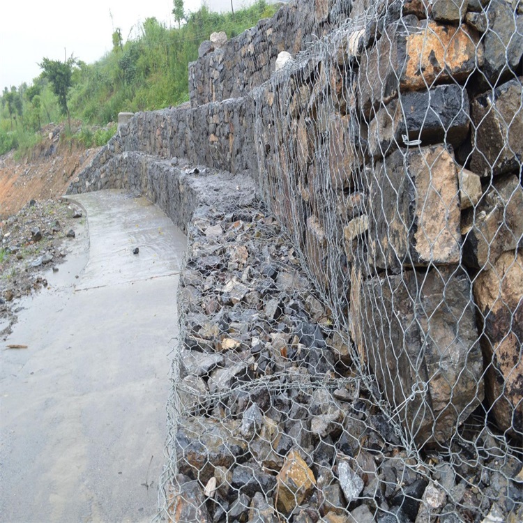 邊坡石籠防護網是使填石固定就位的鐵絲或聚合物絲的網格式制作物。鐵絲籠是由鐵絲編織的網格或是焊接而成的結構物。這兩種結構可所以電鍍的,編織的鐵絲箱可別的涂上PVC.用抗風化的鞏固石塊作填料,它在石箱或石籠沉排中不會因磨蝕而很快破碎。裝有不同類型的塊石的石籠有不同的特性。多角的塊石能互相很好地聯鎖在一起,用其填裝的石籠不易變形。