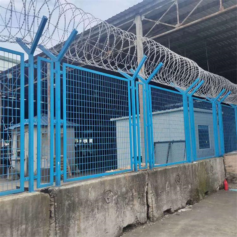 軍事防護網(wǎng)又稱作“Y型安全防御護網(wǎng)”,隔離柵、護欄網(wǎng)是由V型支架立柱,加強型焊接片網(wǎng),安全防盜連接件和熱鍍鋅刀片刺繩組成強度和安全防御性級別很高。近年來,被廣泛應用在機場,軍事基地等高安全場所。